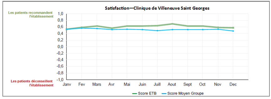 Attachée à la qualité de la prise en charge au quotidien, la Clinique de Villeneuve-Saint-Georges participe au recueil de différents indicateurs nationaux définis par la Haute Autorité de Santé (HAS) pour tous les établissements de santé. Ces derniers permettent un suivi dans le temps des améliorations de la qualité et de la lutte contre les infections nosocomiales. Ils répondent par ailleurs à une demande légitime d'information et de transparence de la part des usagers.